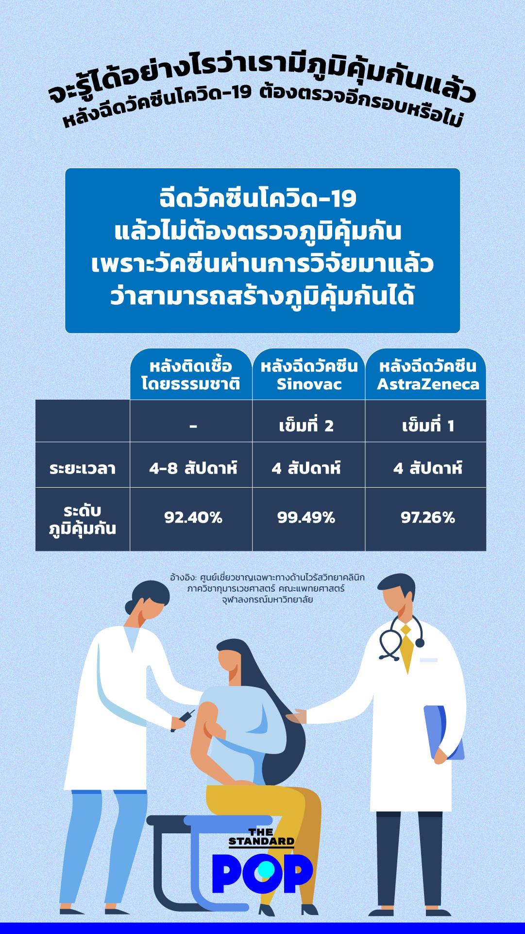 ตรวจภูมิคุ้มกันโควิด หลังฉีดวัคซีน : Nho8l Cbmu3bim : ตอนนี้มีหลากหลายคำถามเกี่ยวกับ 'วัคซีนโควิด 19' ไม่ว่าจะการเตรียมตัวก่อนฉีด หรือหลังฉีดวัคซีนแล้ว จำเป็นต้องตรวจ 'ภูมิต้านทาน' หรือไม่?. กรมวิทย์ ไม่แนะนำตรวจภูมิคุ้มกันด้วย rapid test หลังฉีดวัคซีนโค. ด้าน(syringe)(syringe) วัคซีนของ ซิโนแวค ก่อนฉีดวัคซีน 0% (ทุกรายตรวจไม่พบแอนติบอดีต่อเชื้อ) หลังฉีดเข็มแรก 3 สัปดาห์ ตรวจพบแอนติบอดี 65.96%. ทั้งนี้ ปัจจุบัน การฉีดวัคซีนในประเทศไทย มีผู้เข้ารับวัคซีนโควิด 19 เข็มที่ 1 แล้วมากกว่า 3.3 ล้านราย และเข็มที่ 2 มากกว่า 1.4 ล้านราย โดยมีเป้าหมาย. โรงพยาบาลเมดพาร์ค แจ้งราคาตรวจหาแอนติบอดีต่อไวรัสโควิด พร้อมรายละเอียดการเว้นระยะห่างหลังฉีดวัคซีนแต่ละชนิด วันที่ 29 มิถุนายน 2564. หลังมีการเลื่อนฉีด astrazeneca เข็มที่ 2 ข้อมูลจาก ศ.พญ.กุลกัญญา โชค.